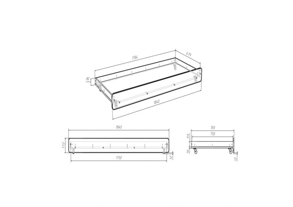 габариты (Д×Ш×В): 1840 × 784 × 184