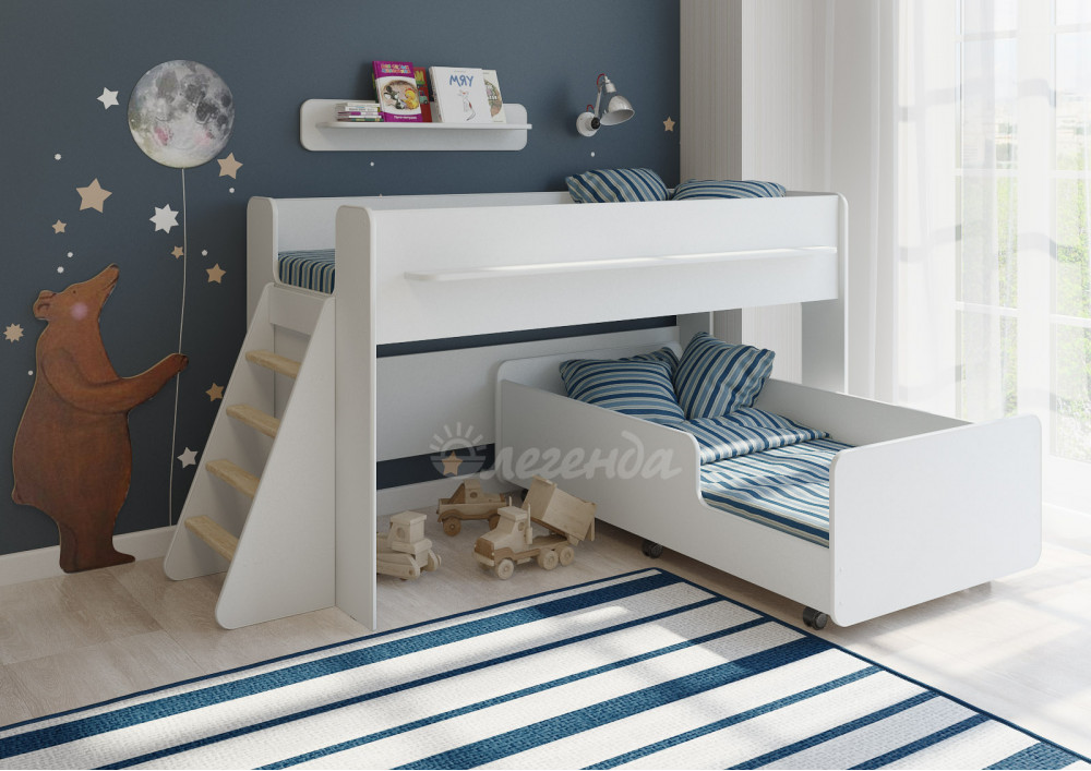 Детская выкатная кровать Легенда 23.3 белая - замечательный комплект для двоих детей.